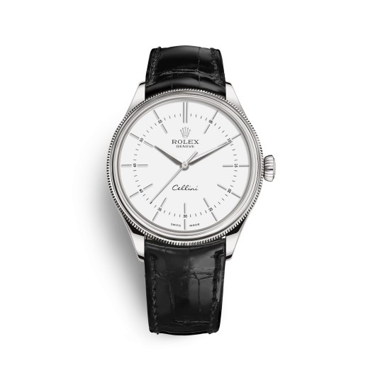 シンプルで見やすいチェリーニ タイムのダイアルは、時代を超越した伝統的な時計製造の規範を讃えると同時に、エレガントな現代性で再解釈しています。ローマ数字はスマートにデザインされ、アワーマーカーはダイアルのより内側に配置された分表示で区切られ、針の先端により近づくよう細長いデザインとなっています。すべてのロレックス ウォッチと同様に、アワーマーカーとロレックスのクラウンマークは18 ctゴールドで作られています。