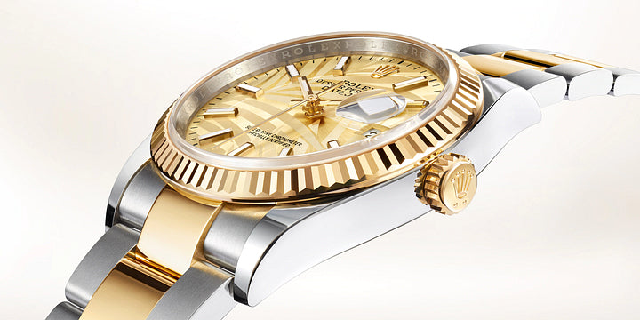 ロレックス フルーテッドベゼルは 卓越性の象徴。元来 オイスターベゼルの刻みにはベゼルをケースにねじ込み 時計の防水性能を確実にする機能的な目的があった。したがって その刻みはバックケースにも施されており 防水性能の維持という同じ理由で ロレックス独自のツールを用いてケースにねじ込まれていた。時を経て ベゼルの刻みはデザインの要素となり ロレックスのシンボルとなった。現在 フルーテッドベゼルは卓越性の象徴であり ゴールドのみで製造されている。