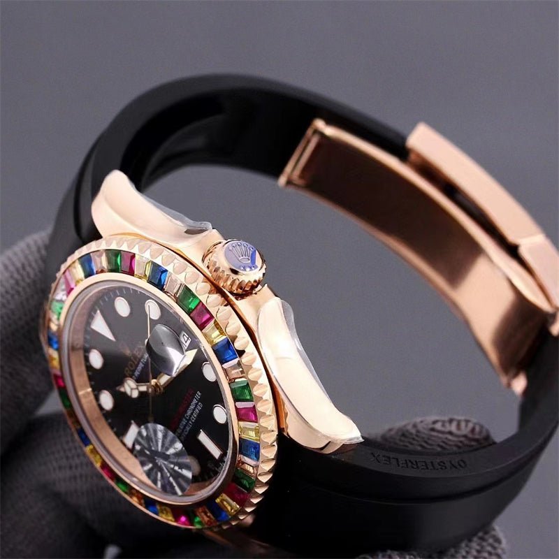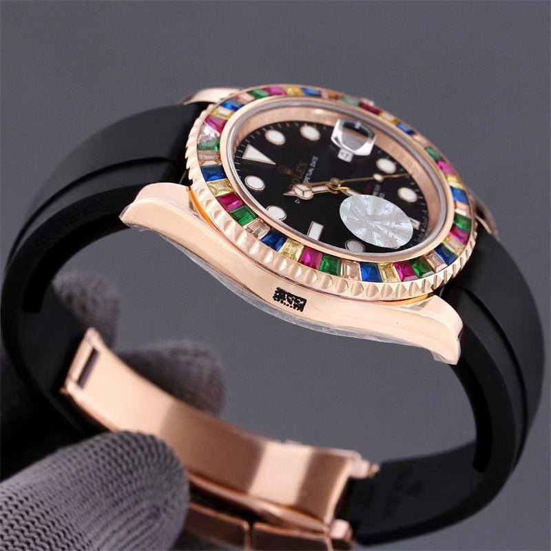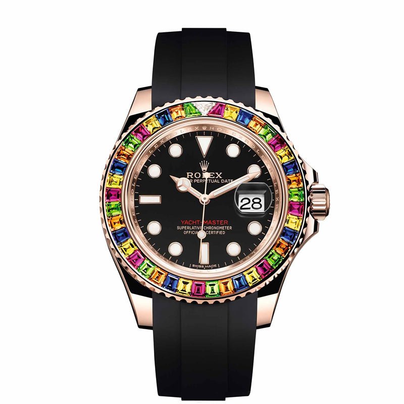 仕様:3針、デイト表示、回転ベゼル(32個のサファイア、8個のツァボライト、1個のダイヤモンド)、オイスターフレックス