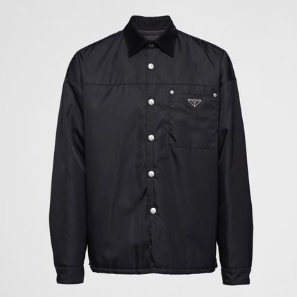 【お洒落度UP】PRADA リナイロン 長袖シャツ 胸ポケット付き ロゴデザイン