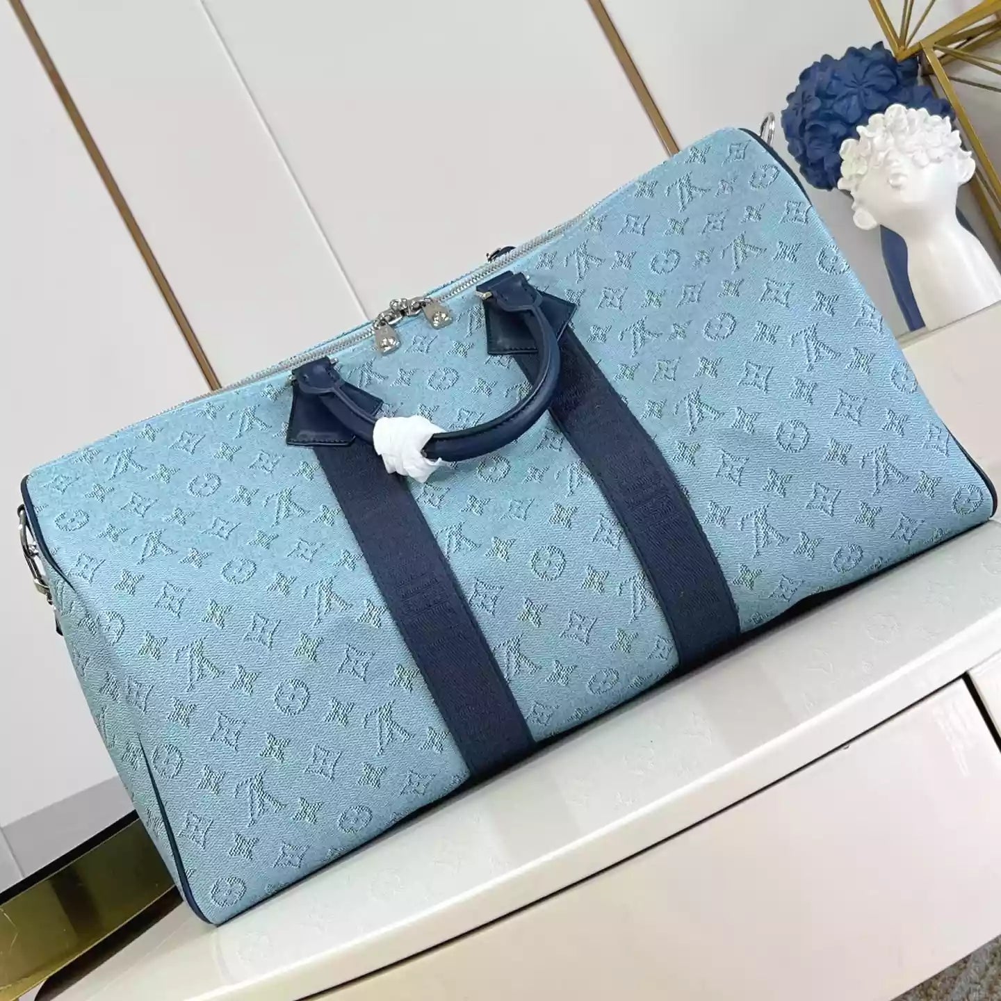 キーポール バンドリエール 50 バッグ ブルー モノグラム キャンバス M14837で、スタイルと実用性の完璧な融合をお楽しみください。