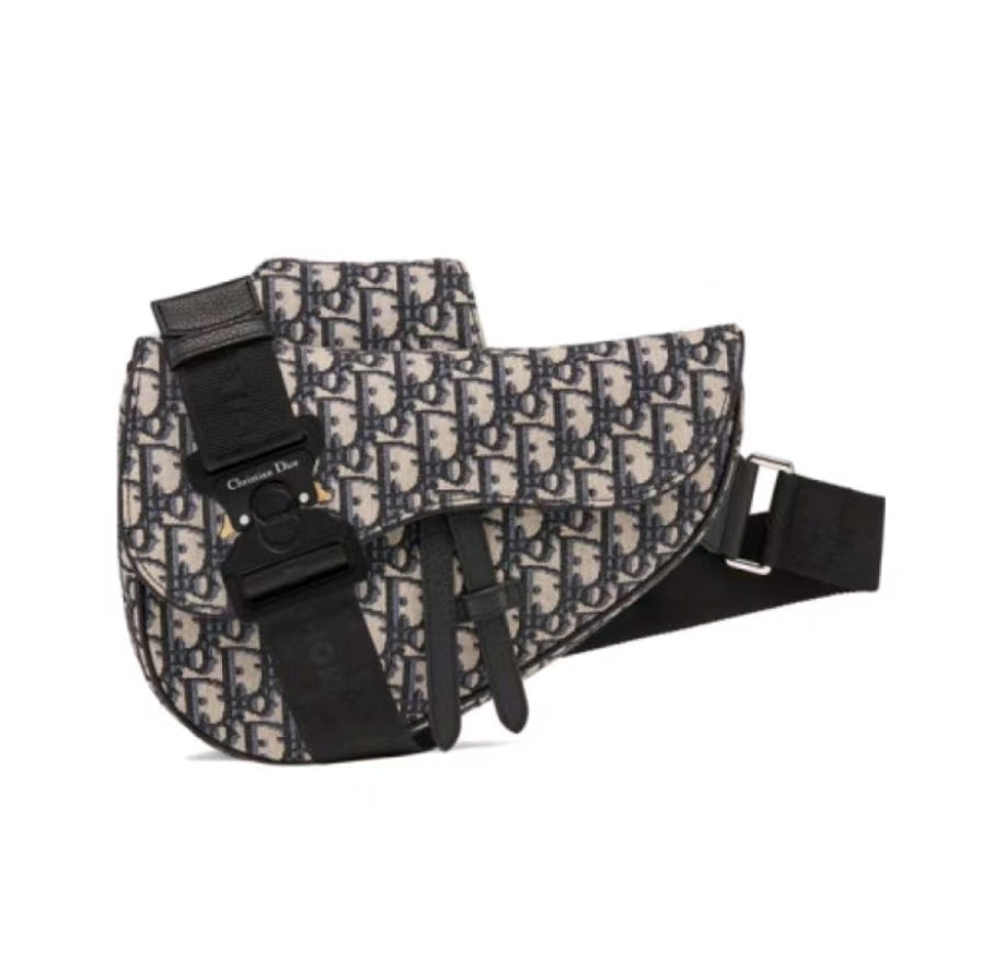 【型番】:1ADP0093(アプリコット・ジャカード)サドルオブリーク・キャンバス&ブラック粒感タッチレザー バッグ