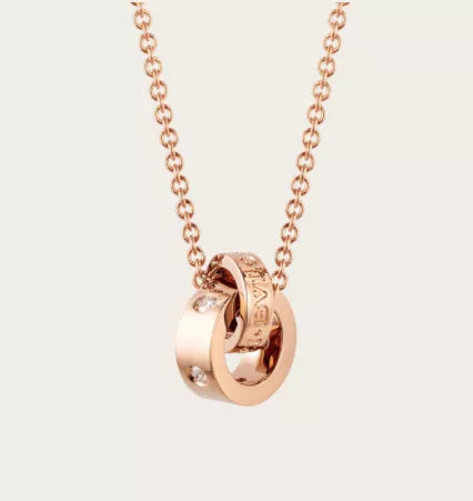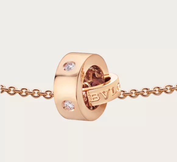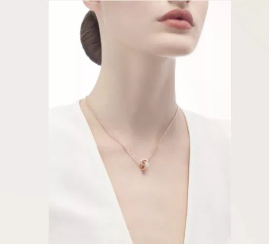 ブランドのルーツであるローマ文化を基盤とし、文化と現代性をエレガントに融合させたブルガリ・ブルガリ ネックレスは、躍動感あふれる現代的な気品を体現しています。トレードマークであるダブルロゴは、古代のコインに刻まれた曲線的な刻印からインスピレーションを得ており、今日では遊び心と意外性を兼ね備えた解釈へと進化を遂げ、デザインに独特の要素をもたらしています。ブルガリ・ブルガリ 18Kローズゴールド ペンダントネックレス、5石のダイヤモンド。