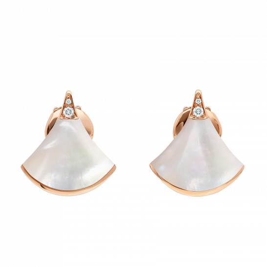 DIVAS' DREAMイヤリングは、女性の優雅な気質と永遠の都ローマの魅力的な雰囲気からインスピレーションを得ており、独特のローマ精神を持つ最も魅力的な女性たちに敬意を表しています。このイヤリングは、カラカラ浴場の壮麗な大理石と扇形モザイクの魅力的な曲線を際立たせ、女性的で繊細なエレガンスを醸し出し、イタリアの美学の真髄を反映しています。ローズゴールド素材を使用し、マザーオブパールとダイヤモンドのインレイで装飾されたDIVAS' DREAMシリーズのイヤリングです。