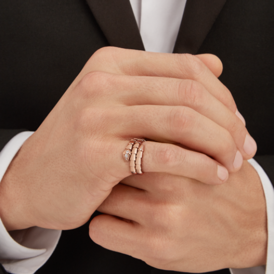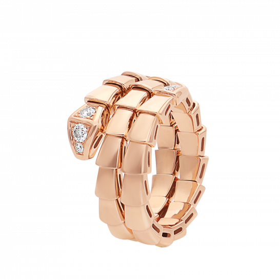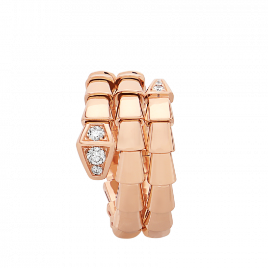 SERPENTI VIPER シリーズの 18K ローズ ゴールド ダブル リングには、セミデンス ダイヤモンドがあしらわれています。