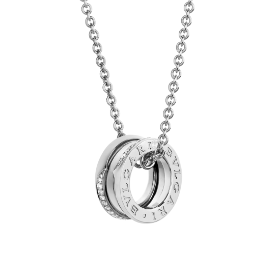 B.ZERO1シリーズの18Kホワイトゴールドネックレスは、有名な円形闘技場コロッセオからインスピレーションを得ており、ブルガリの創造性を革新的な方法で表現しています。目を引くこのペンダントは、未来的なデザインで、縁にはセミパヴェダイヤモンドがあしらわれています。独特の螺旋形状は、未来を切り開く力強い力を表しています。