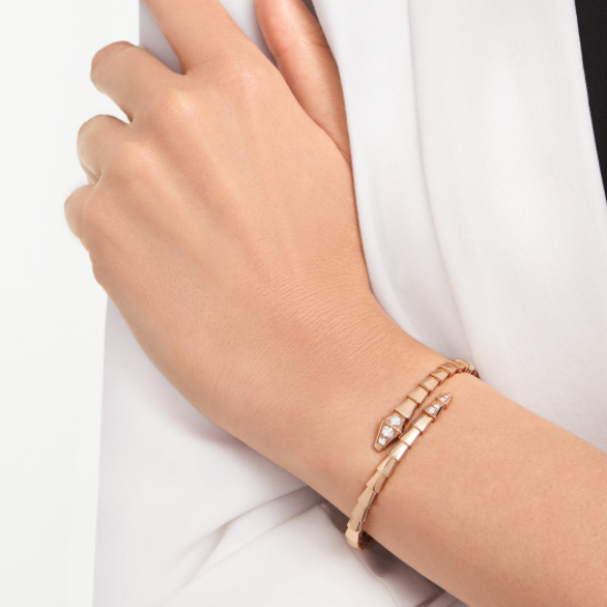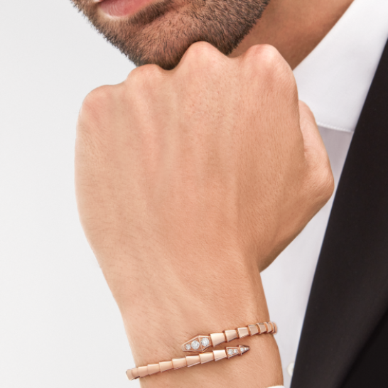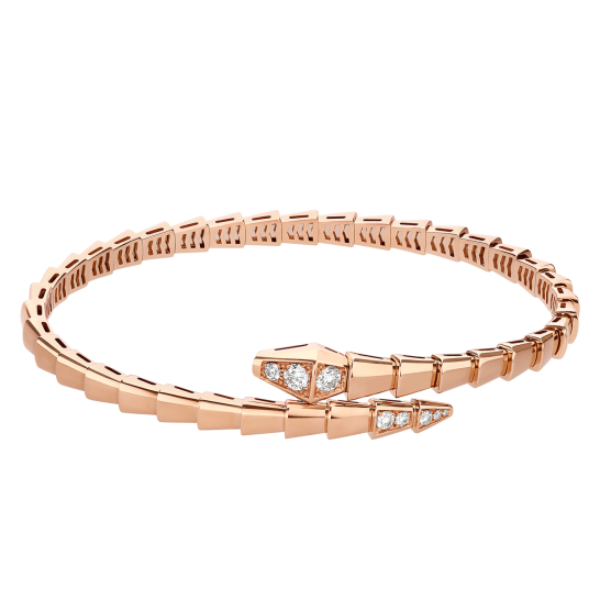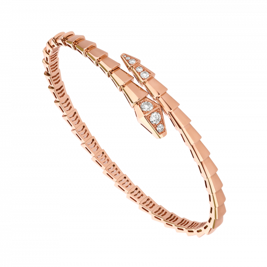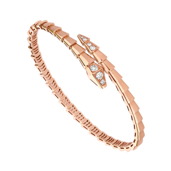 SERPENTI VIPER シリーズの 18K ローズ ゴールド ブレスレットは、セミデンス ダイヤモンドで装飾されています。