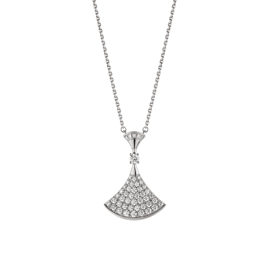 DIVAS' DREAMネックレスは、女性のエレガンスと永遠の都ローマの魅惑的な雰囲気からインスピレーションを得ており、独特のローマ精神を持つ最も魅力的な女性たちに敬意を表しています。フェミニンで洗練されたこのネックレスは、カラカラ浴場の大理石の美しさと扇形モザイクの魅力的な曲線を反映し、イタリアの美学の真髄を体現しています。DIVAS' DREAMシリーズのネックレスは、18Kホワイトゴールド製で、パヴェダイヤモンドがあしらわれています。