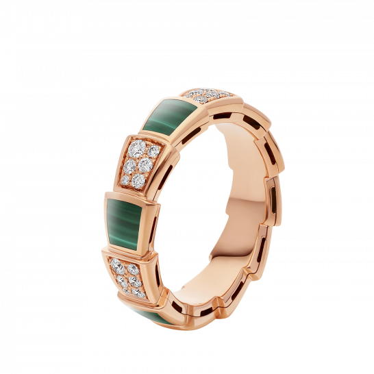 このリングは、襲いかかる前の蛇の浮遊姿勢を彷彿とさせ、指に官能的に巻きつき、その魅惑的な曲線に魅了されます。精巧でファッショナブルなこのジュエリーは、鱗の持つ恐ろしさと魅力を、霊的な蛇の曲線美と巧みに融合させています。魅惑的なデザインは、官能と魅惑を湛え、見る者を陶酔させます。光と影、知性と欲望。蛇の二面性を見事に表現しています。SERPENTI VIPERシリーズの18Kローズゴールドリングは、マラカイトをセッティングし、ダイヤモンドで装飾されています。