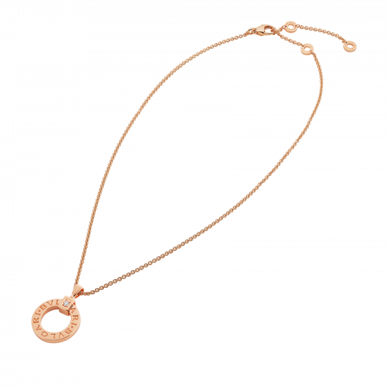 BVLGARIBVLGARI シリーズ 18K ローズゴールド ペンダント、アタッチド ネックレス、ダイヤモンドセット、長さ 38-45.5 cm。
