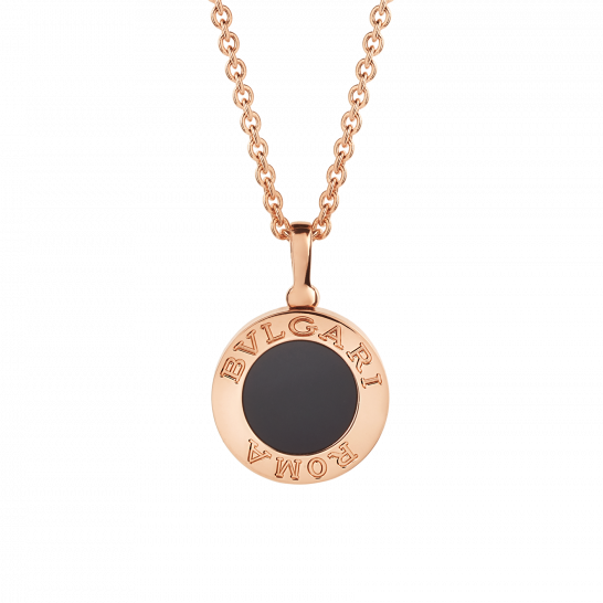 ブルガリ・ブルガリの18Kローズゴールド製ネックレス。オニキスとパヴェダイヤモンドがあしらわれています。長さ41~43cm(16.14~16.92インチ)。