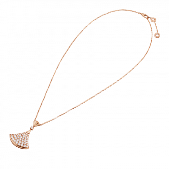 DIVAS' DREAMネックレスは、女性のエレガンスと永遠の都ローマの魅惑的な雰囲気からインスピレーションを得ており、独特のローマ精神を持つ最も魅力的な女性たちに敬意を表しています。フェミニンで洗練されたこのネックレスは、カラカラ浴場の大理石の美しさと扇形モザイクの魅力的な曲線を反映し、イタリアの美学の真髄を体現しています。DIVAS' DREAMシリーズのネックレスは、18Kローズゴールド製で、パヴェダイヤモンドがあしらわれています。