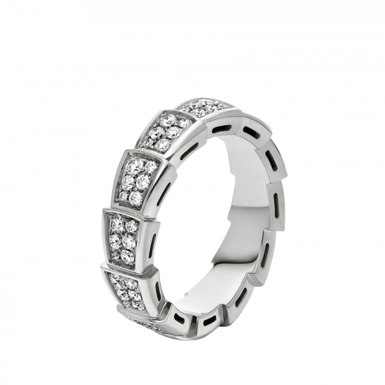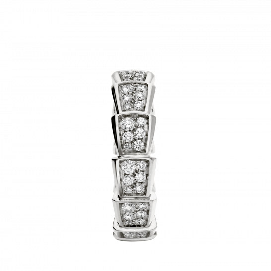 ブルガリは、そのスピリットアニマルである蛇に敬意を表し、このセルペンティ ヴァイパー リングの魅力、誘惑、そして魅惑的なセンシュアリティを魅惑的なデザインで表現しました。エレガントでチャーミングなこのジュエリーは、指の間を優雅に彩ります。美しい鱗が特別な光を放ち、蛇独特の曲線を描き出します。