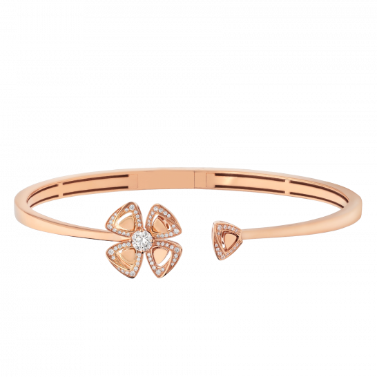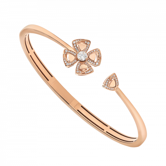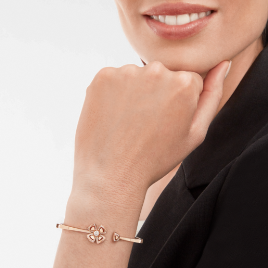 FIOREVERコレクションは、「永遠の都」ローマで鮮やかに咲き誇り、ローマ人が大切にしていた幸福と喜びの象徴である魅力的な4枚の花びらの花からインスピレーションを得ています。FIOREVERは、FIORE(イタリア語で花を意味する)とFOREVER(英語で永遠を意味する)という2つの意味深い言葉で構成されており、情熱的で見事なデザインでローマ人の人生への愛を称えています。FIOREVERウィングブロッサムシリーズのブレスレットは、ファッショナブルでモダンな外観のラインで手首を歩き、風に揺れる絶妙なダイヤモンドの花で飾られ、時代を超越した鮮やかな光を放ちます。FIOREVERウィングブロッサムシリーズのブレスレットは、18Kローズゴールド素材で作られ、ダイヤモンドがセットされ、ダイヤモンドインレイで飾られています。