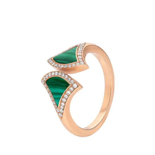 DIVAS' DREAM シリーズの 18K ローズ ゴールド リングにはマラカイトがセットされ、ダイヤモンドのインレイが組み合わされています。