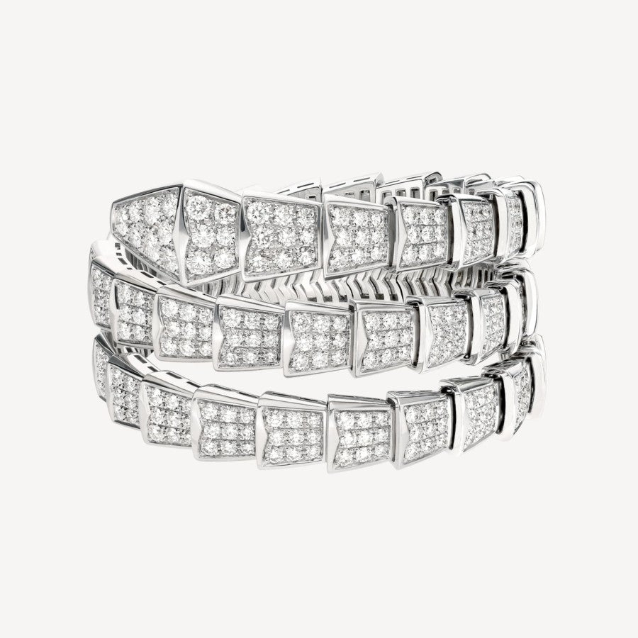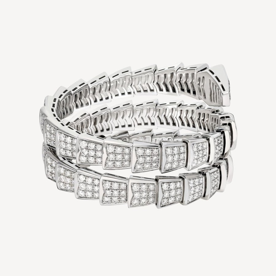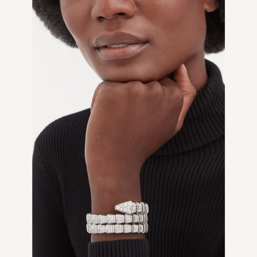 ブルガリは、スピリットアニマルへのオマージュとして、このセルペンティ ブレスレットで誘惑の力を捉え、官能性と誘惑を催眠術的なデザインでカモフラージュしています。洗練された魅力を放つこのジュエリーは、鱗の貴重さの美しさと蛇の独特のしなやかさで手首を包み込みます。