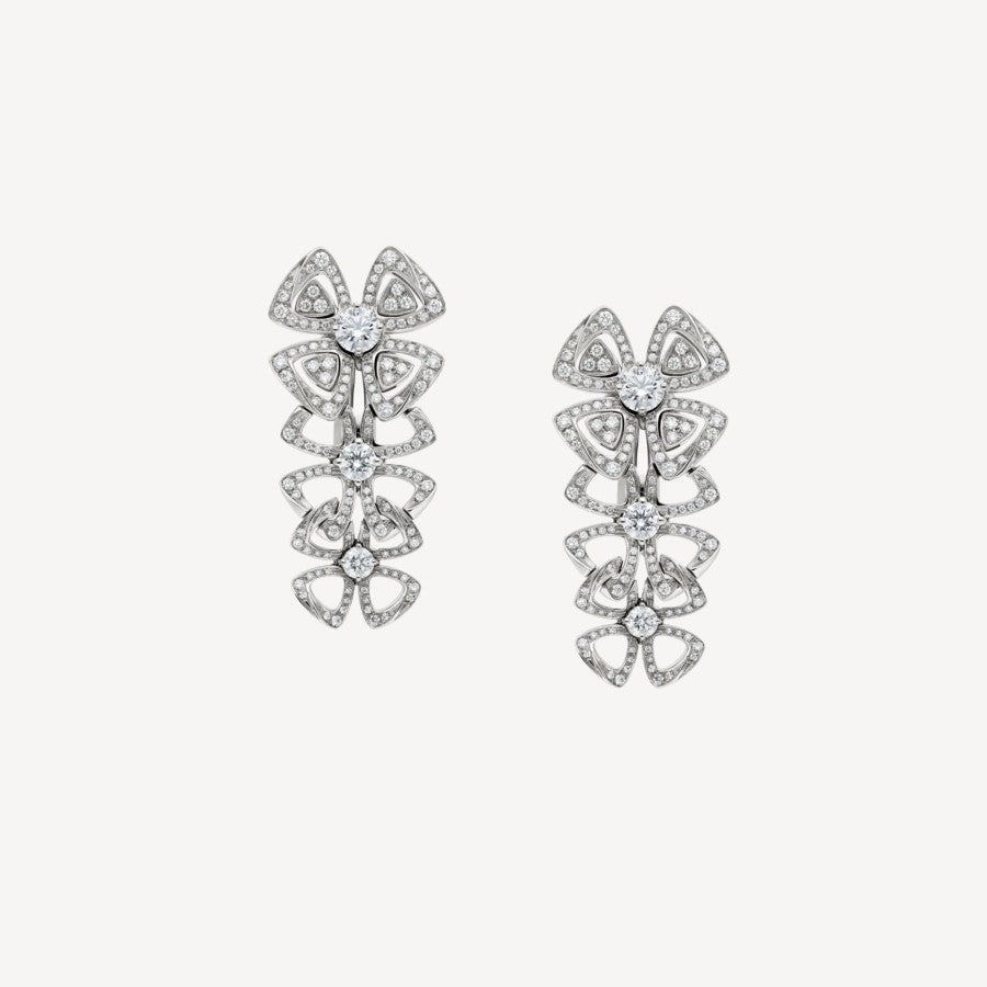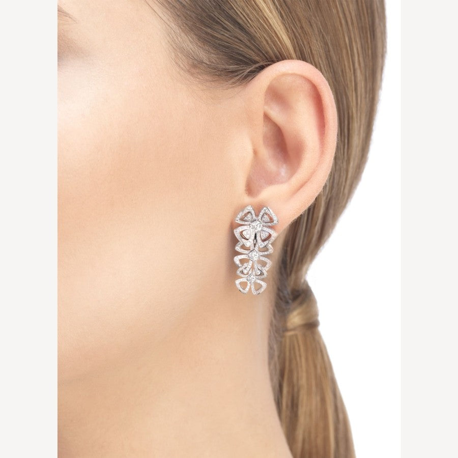 永遠の都ローマの驚異の中で咲き誇るフィオレバーは、ローマ人が幸福と喜びの象徴として大切にしていた魅惑的な4枚の花びらを持つ花からインスピレーションを得ています。イタリア語で「花」を意味する「フィオーレ」と「永遠」という2つの意味深い言葉を融合させたフィオレバーは、自由奔放で情熱的なデザインで、ローマ人の生命への愛を称えています。永遠の輝きを放つこの貴重な花の象徴は、最高品質のダイヤモンドの花冠で丁寧に作られています。18Kホワイトゴールドに、ラウンドブリリアントカットダイヤモンド6個とパヴェダイヤモンドをあしらったフィオレバーペンダントイヤリング。