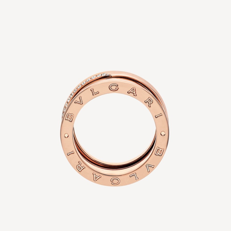 世界で最も有名な円形闘技場、コロッセオからインスピレーションを得た、18KローズゴールドのB.Zero1 スリーバンドリングは、ブルガリの創造的ビジョンを体現した画期的な作品です。未来を称えるために生まれたこのリングは、エッジにデミパヴェダイヤモンドをあしらい、特徴的なスパイラルは新たな始まりのパワーを表現しています。18K