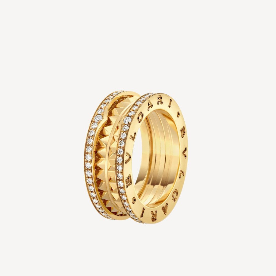 世界で最も有名な円形闘技場、コロッセオからインスピレーションを得た「ビー・ゼロワン ロック」は、ブルガリの創造的ビジョンを大胆に表現した、斬新な作品です。ジュエリー美学の真髄に挑戦する、特徴的なスパイラルはゴールドのスタッドで新たに解釈され、ブルガリの象徴的なデザイン精神である、妥協を許さない先見の明を際立たせています。パヴェダイヤモンドをあしらった18Kイエローゴールドの「ビー・ゼロワン ロック」ツーバンドリング。