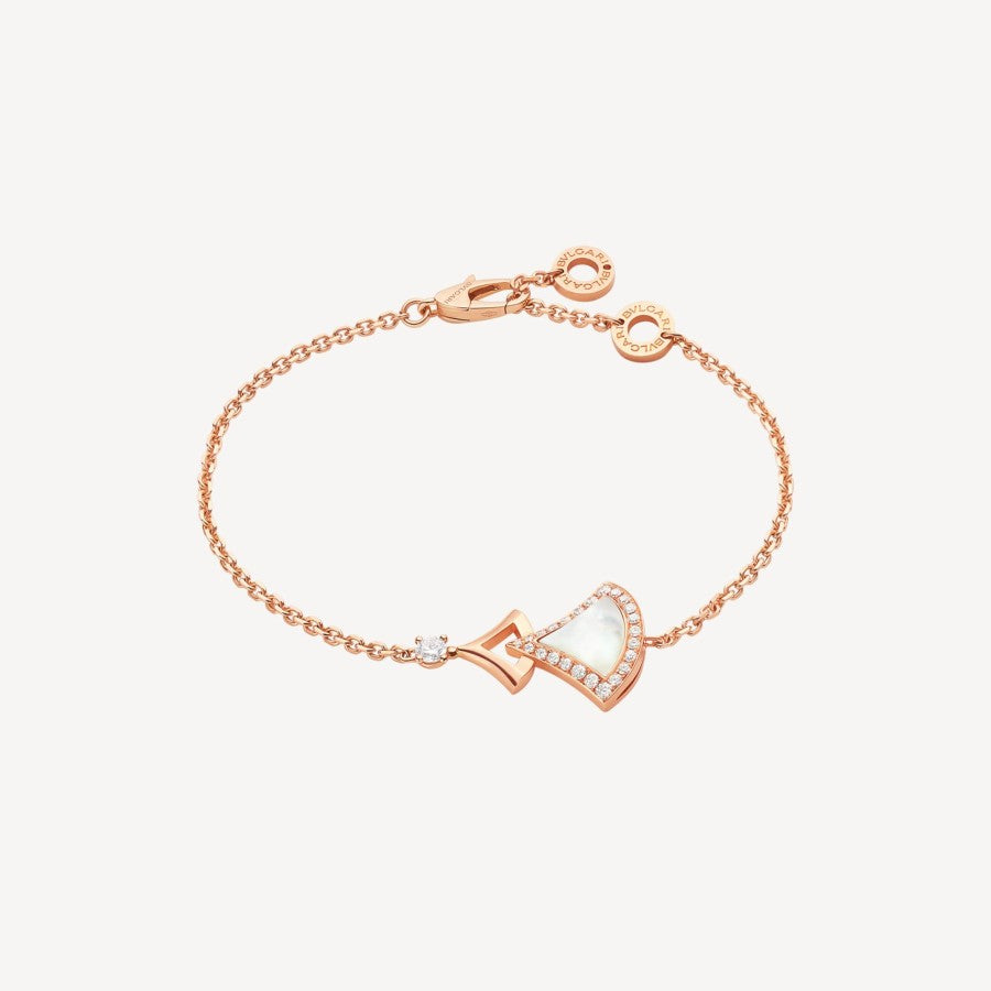 マザーオブパールのインサートとパヴェダイヤモンドをあしらったディーヴァズドリーム18Kローズゴールドブレスレット。