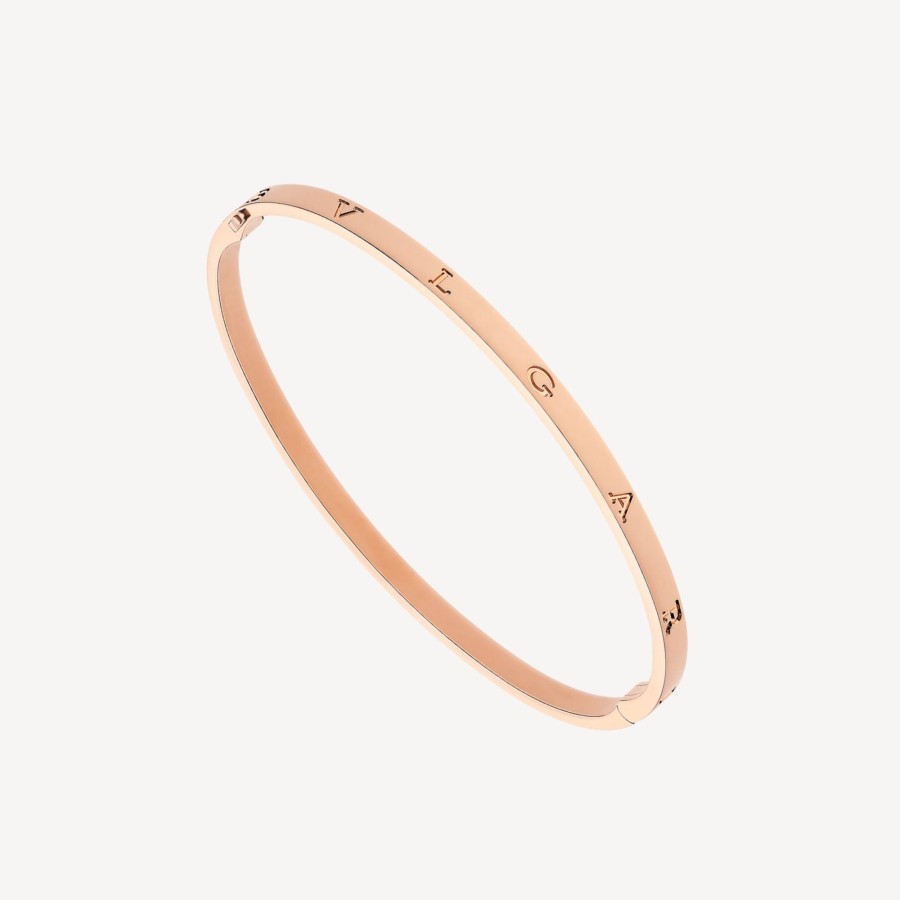 ブルガリのローマ的ルーツにインスパイアされた、現代的なエレガンスを体現するB.Zero1 エッセンシャル バングルブレスレットは、18Kローズゴールド製です。このラインの本質的な美的コードに焦点を当て、ブランドの象徴的なシグネチャーである有名なロゴをあしらったブレスレットは、デザインにおける特徴的な要素へと進化を遂げています。着け心地が良く、重ね付けもしやすいこの万能なアイテムは、モダンでありながら時代を超越したスタイリングで、あなたの個性を巧みに表現します。B.Zero1
