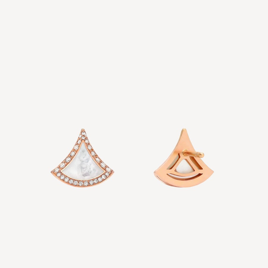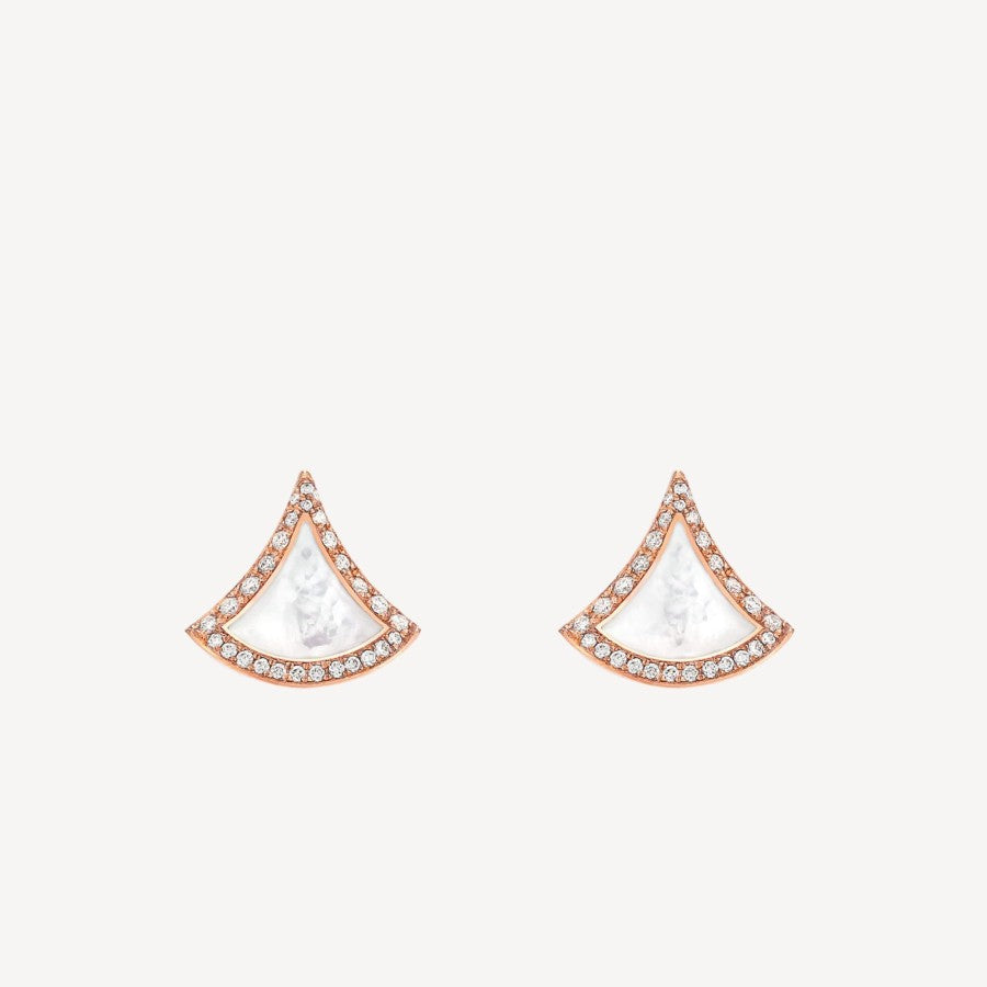 マザーオブパールのインサートとパヴェダイヤモンドをあしらった「ディーヴァズ・ドリーム」18Kローズゴールドイヤリング。