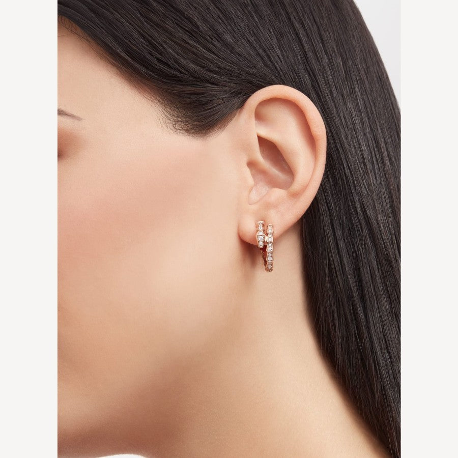 ローズゴールドにパヴェダイヤモンドをあしらったセルペンティ ヴァイパー イヤリング。