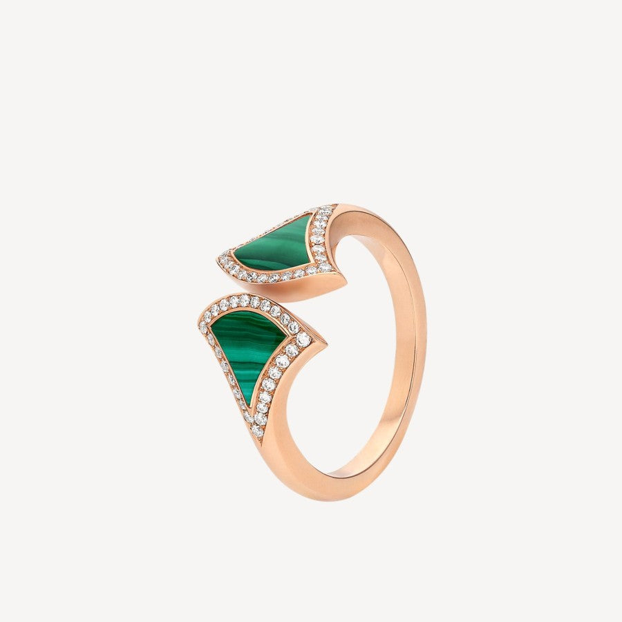 マラカイトインサートとパヴェダイヤモンドをあしらった「ディーヴァズ・ドリーム」18Kローズゴールドリング。