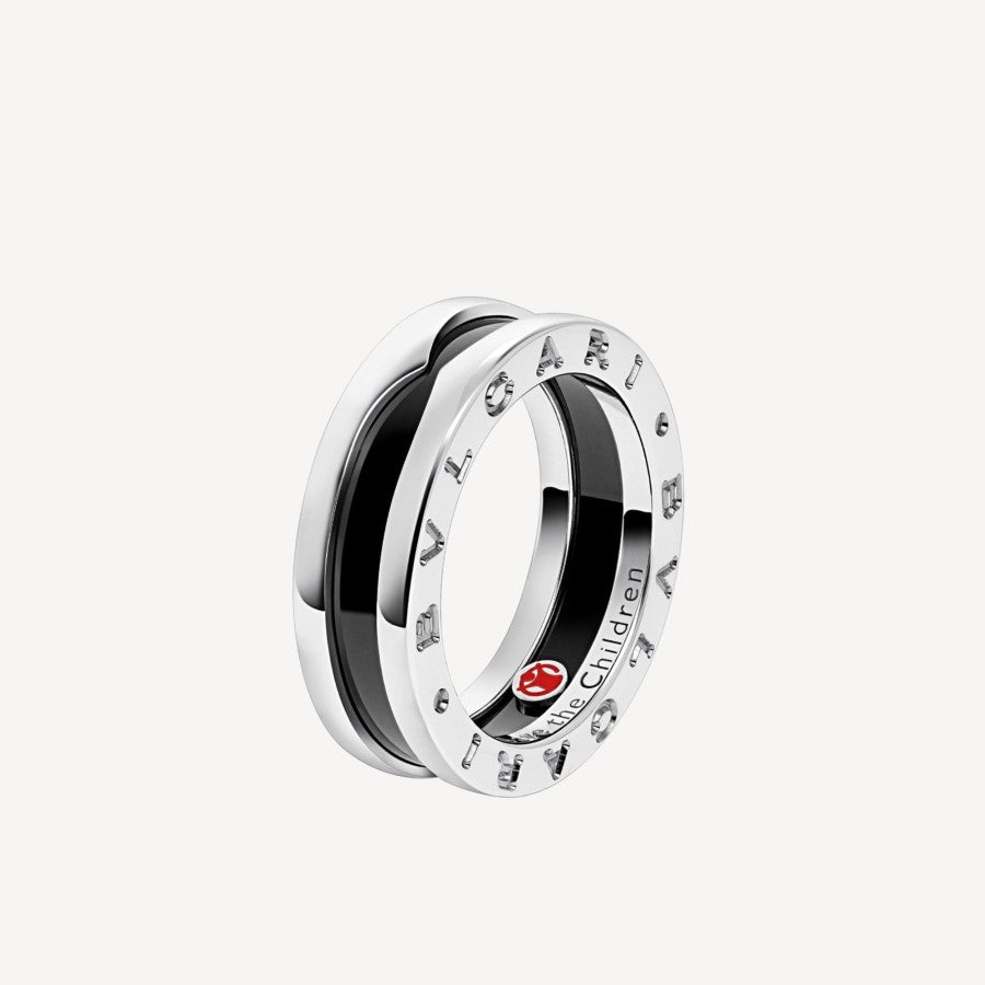 B.Zero1ジュエリーコレクションからインスピレーションを得た、925スターリングシルバーとブラックセラミック製のナロースピナーリングは、ブルガリとセーブ・ザ・チルドレンとの継続的な慈善パートナーシップを称え、慈善団体のロゴが刻印されています。ブルガリのセーブ・ザ・チルドレンジュエリーコレクションの販売ごとに、収益の一部が、世界で最も困難な状況にある子どもたちと若者に支援と機会を提供するプログラムに寄付されます。セーブ・ザ・チルドレン ワンバンド スターリングシルバーリング ブラックセラミック。