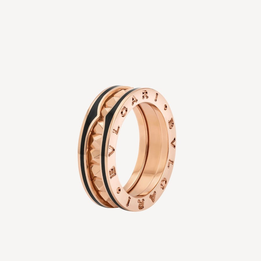 ローズゴールドとブラックセラミックを使用した「ビー・ゼロワン ロック」ワンバンドリング。