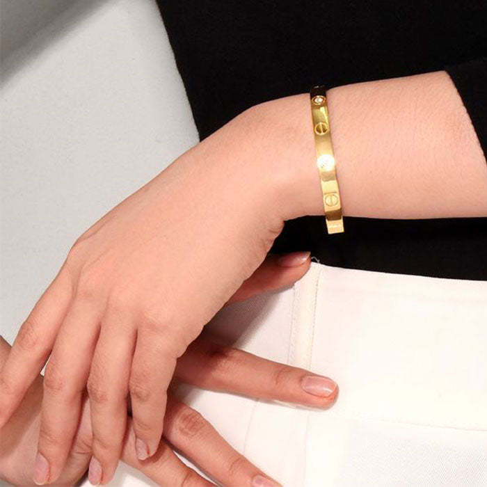 1969年にニューヨークでイタリア人デザイナーのアルド・チプーロによって作られたLOVEブレスレットは、ジュエリーデザインの象徴です。手首に着用し、専用のドライバーを使用して取り外す、2つの硬い弧で構成されたぴったりフィットする楕円形のブレスレットです。