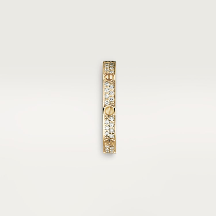 LOVEリング、スモールモデル、18Kイエローゴールド(750/1000)、ブリリアントカットダイヤモンド72個(計0.19カラット)をセット。幅:2.6mm(サイズ52)。