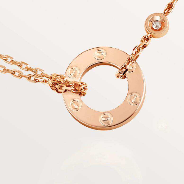 LOVE  ネックレス、18Kローズゴールド、ブリリアントカットダイヤモンド2個(計0.03カラット)。内径7.8mm。チェーンの長さ:392mm。