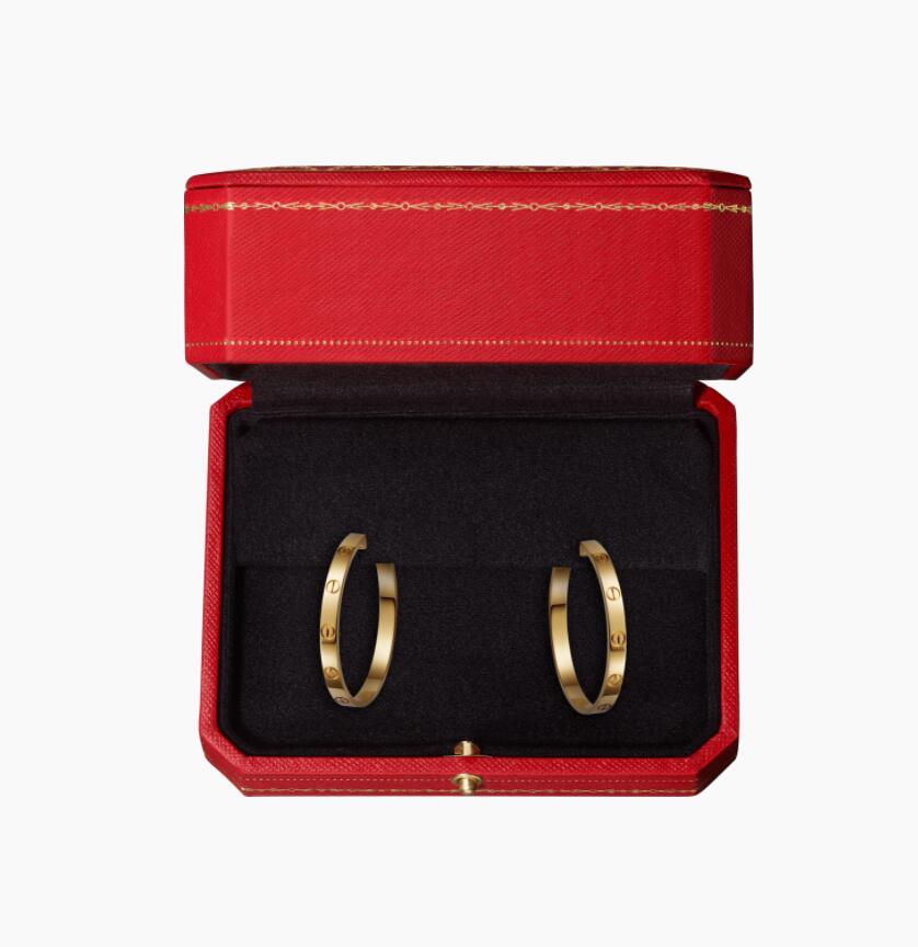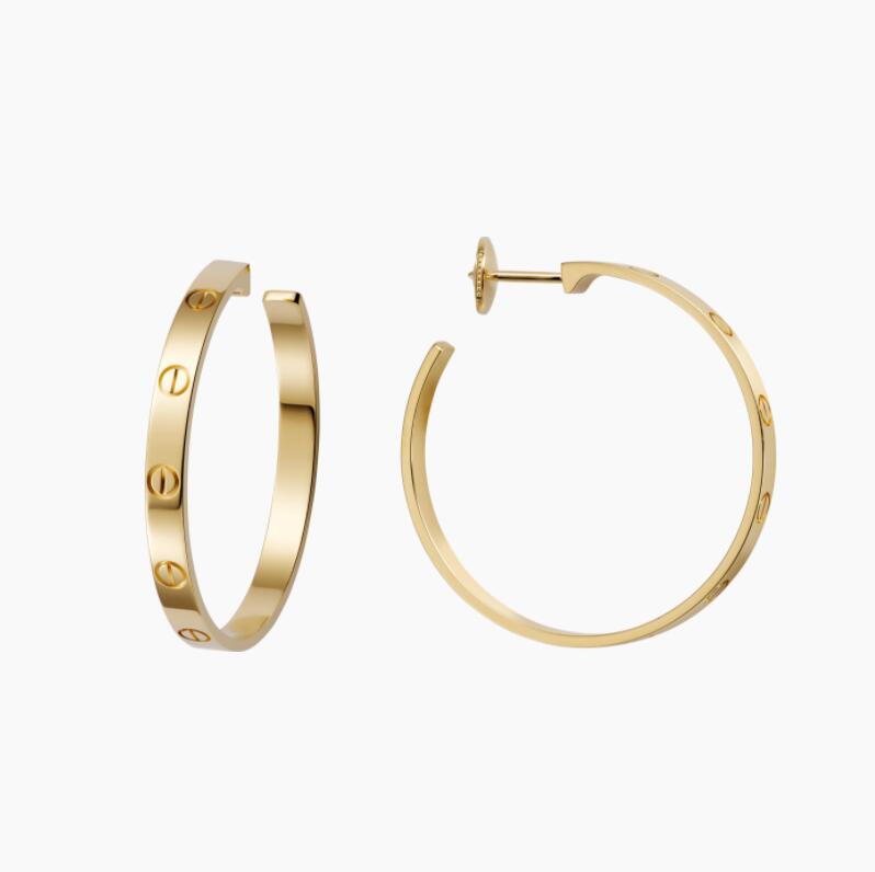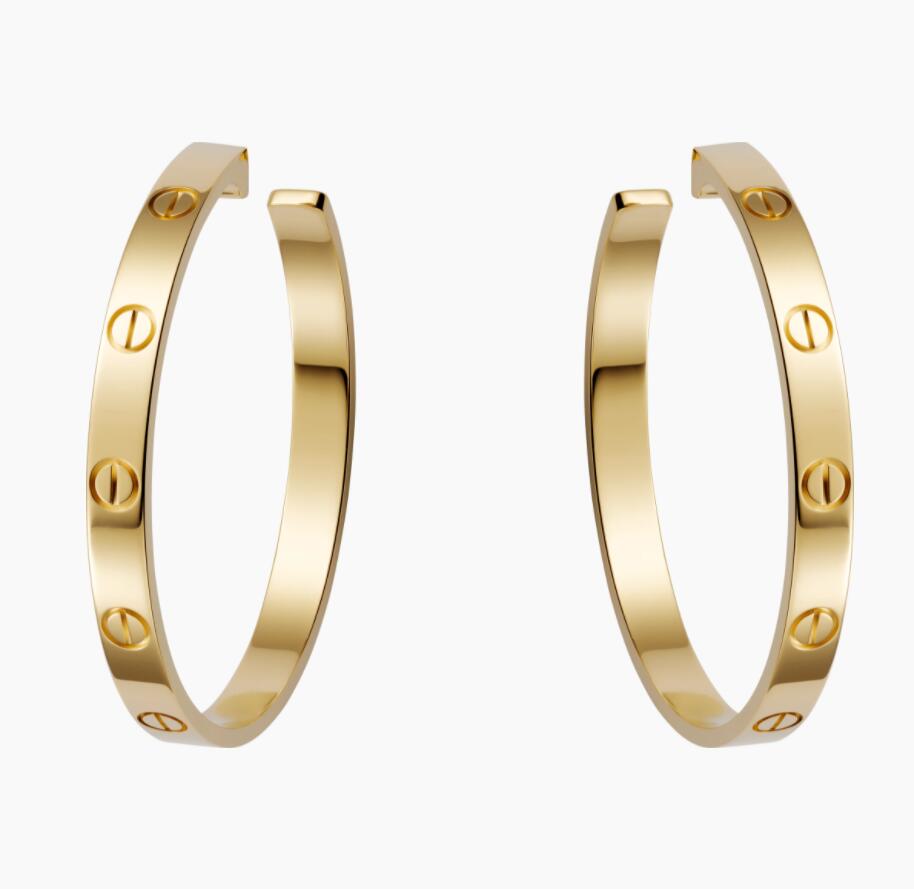 LOVE イヤリング、18Kイエローゴールド。幅:3.6mm。内径:32.6mm。
