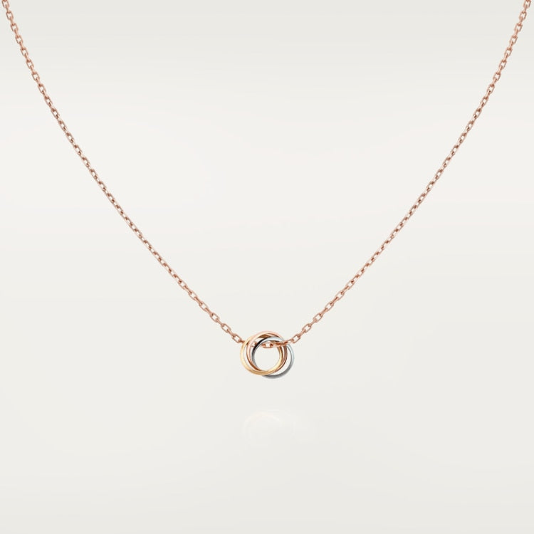 トリニティネックレス、18Kホワイトゴールド(750/1000)、18Kローズゴールド(750/1000)、18Kイエローゴールド(750/1000)、18Kローズゴールド(750/1000)チェーン。内径:10.7mm。ネックサイズ:39~42。