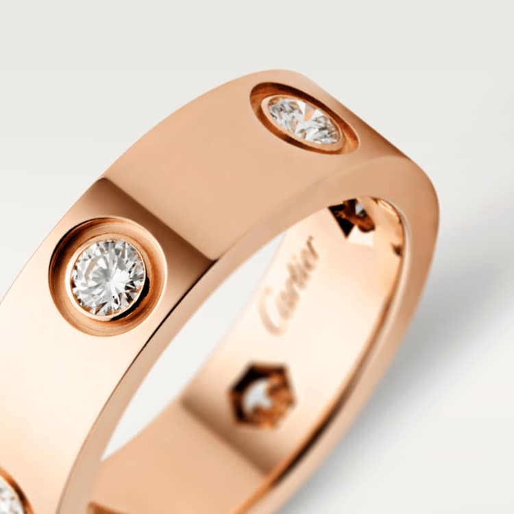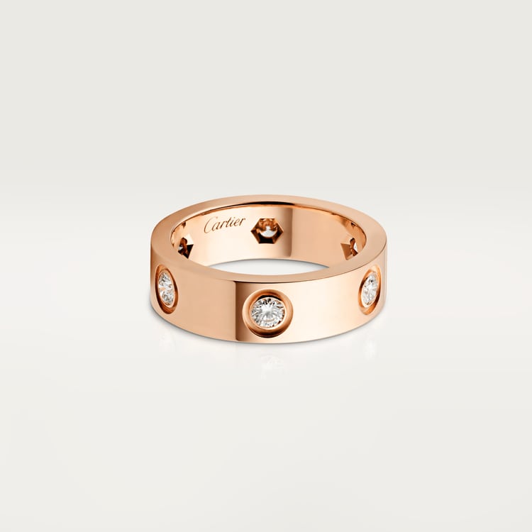 LOVEリング、18Kローズゴールド(750/1000)、ブリリアントカットダイヤモンド6個(計0.46カラット)をセット。幅5.5mm(サイズ52)。