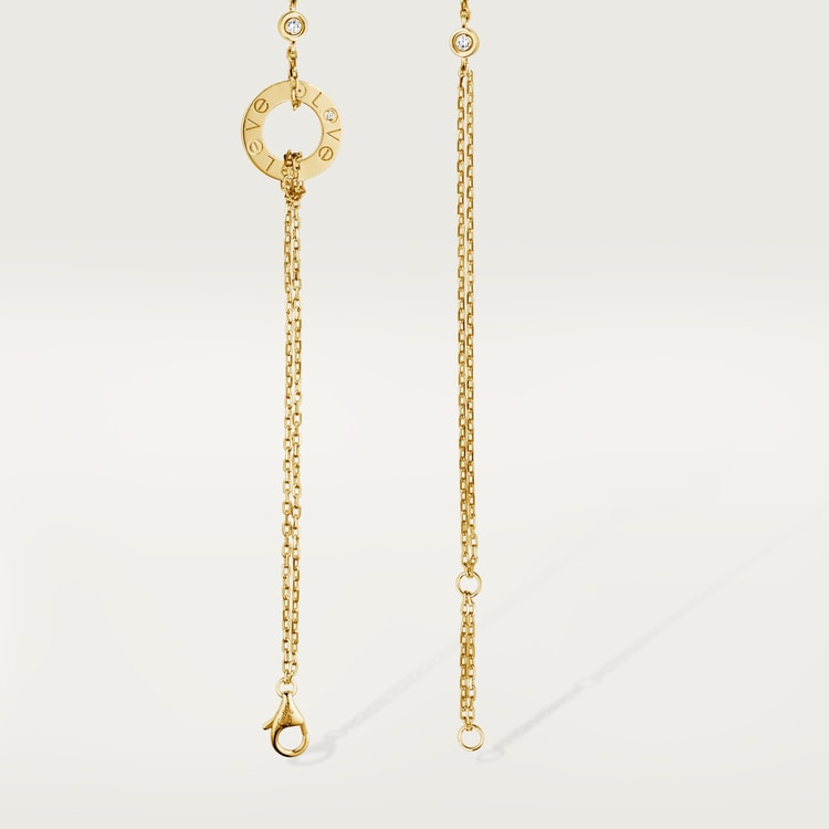 LOVEブレスレット、18Kイエローゴールド(750/1000)、ブリリアントカットダイヤモンド2個(合計0.03カラット)。幅:7.8mm(サイズ17)。