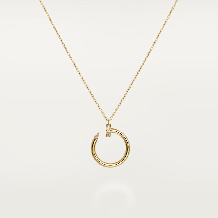 ジュスト・アン・クル ネックレス、18Kイエローゴールド(750/1000)、ブリリアントカットダイヤモンド14個(計0.12カラット)をセット。幅:2.2mm。内径:14.2mm。チェーンの長さは39~41mmに調節可能。