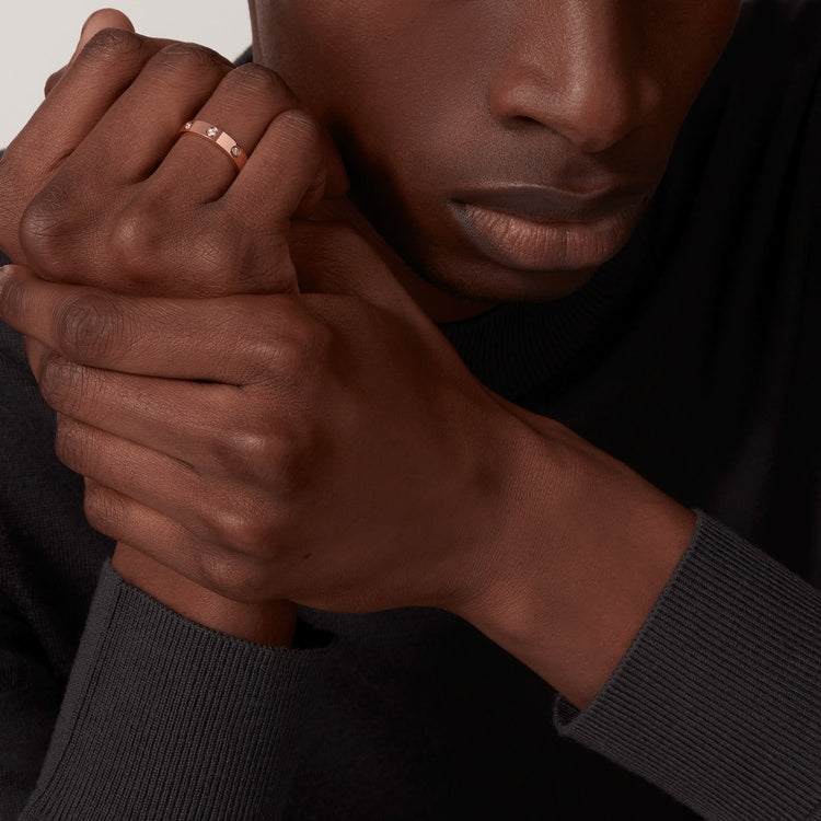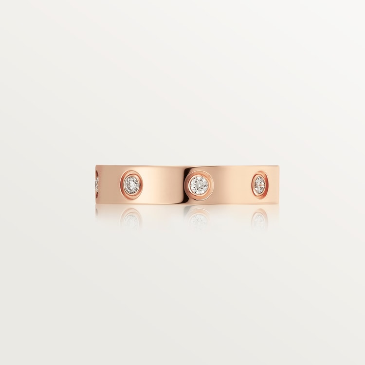 LOVEウェディングリング、18Kローズゴールド(750/1000)、ブリリアントカットダイヤモンド8個(計0.19カラット)をセット。幅:4mm(サイズ52)。