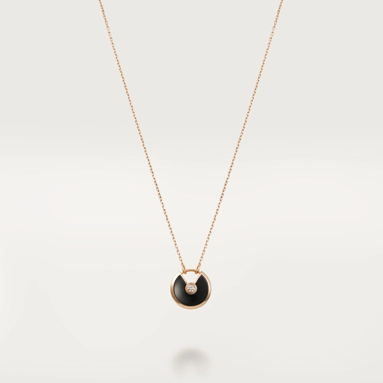 アミュレット ドゥ カルティエ ネックレス、スモールモデル、18K ローズゴールド (750/1000)、0.09 カラットのブリリアントカット ダイヤモンド、オニキスをセット。
