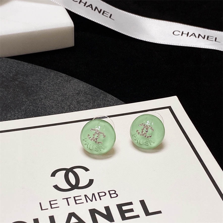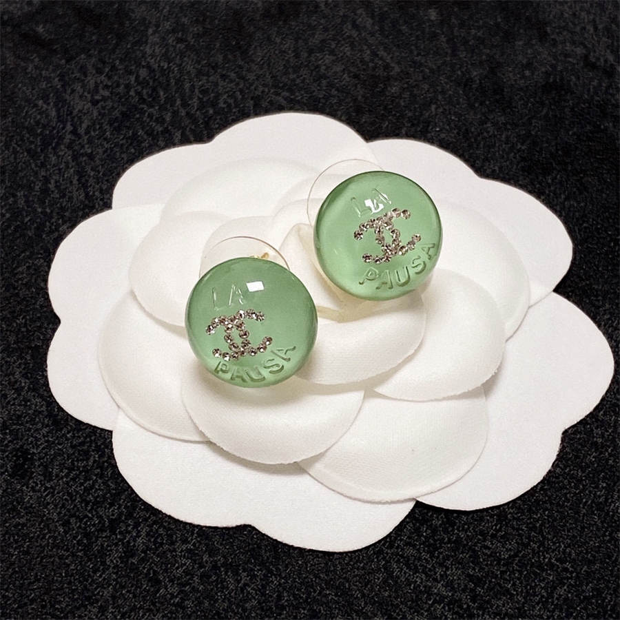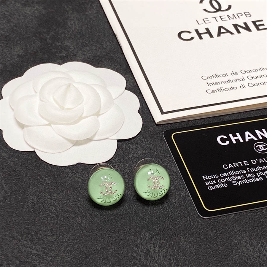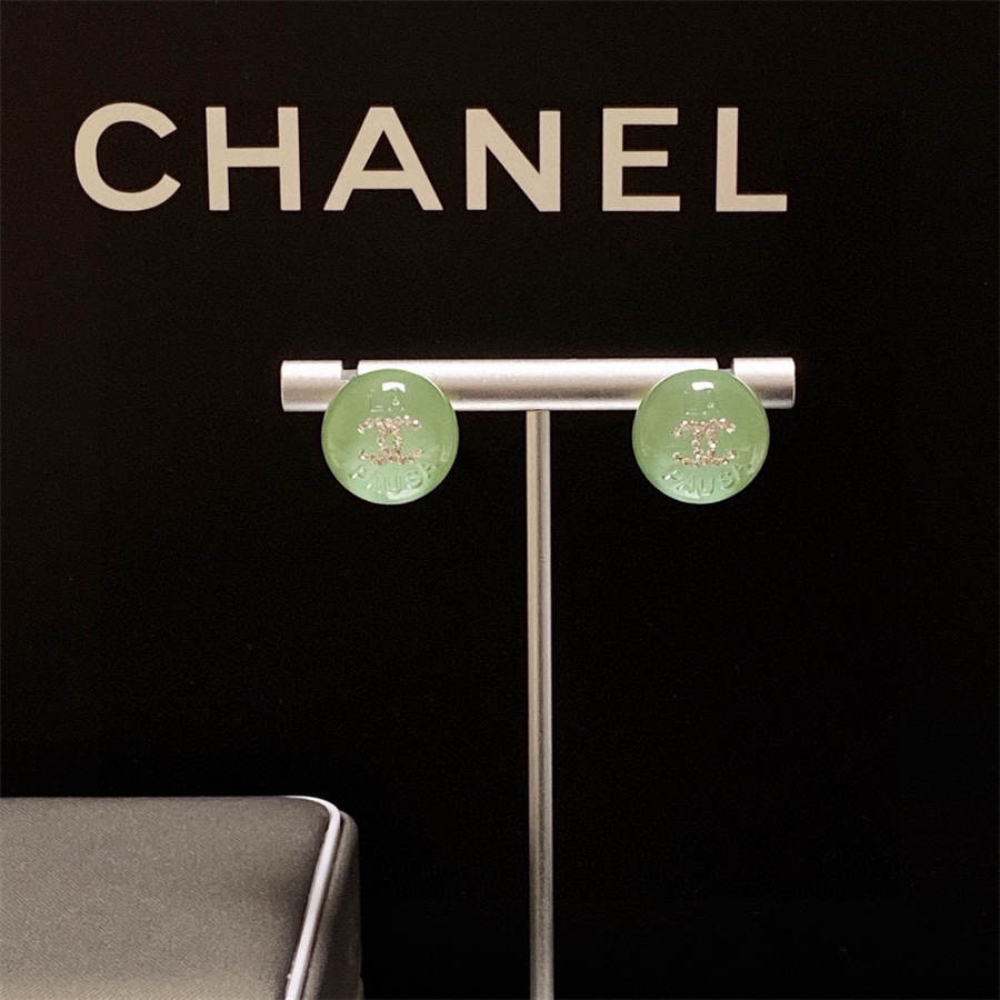 シャネルのライトグリーンクリスタルスタッドイヤリング(ダイヤモンド付き)