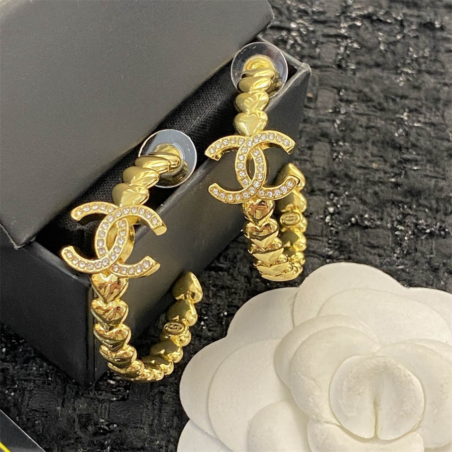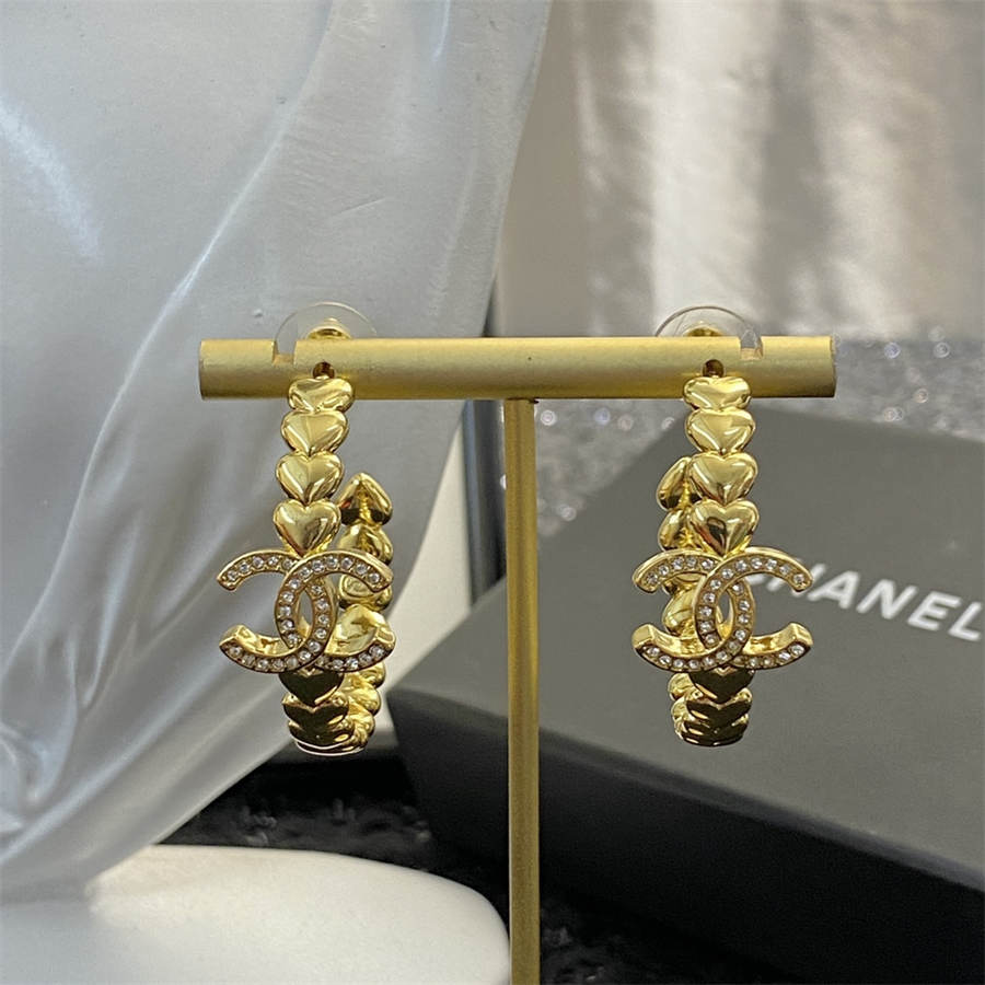 シャネル ダブルC ラインストーン ラブ イヤリング