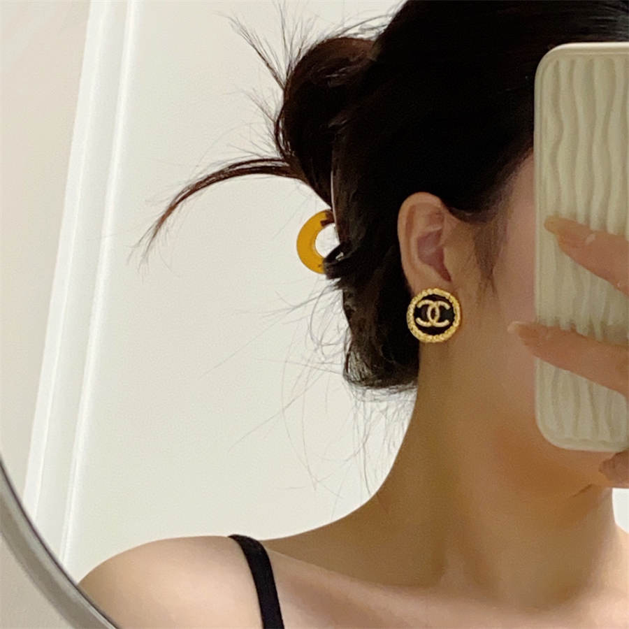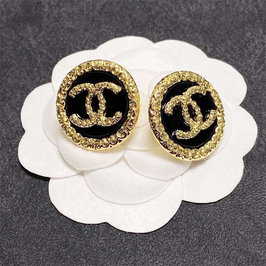 シャネル ミディアム ヴィンテージ ブラック ダブルC レター イヤリング