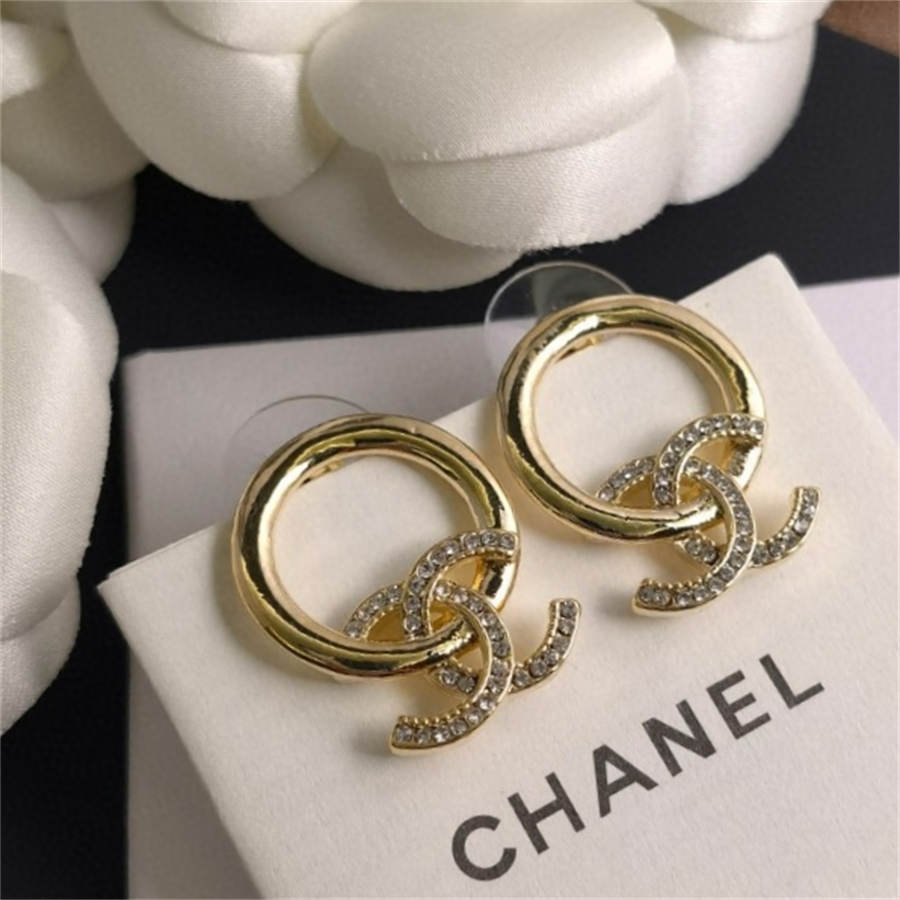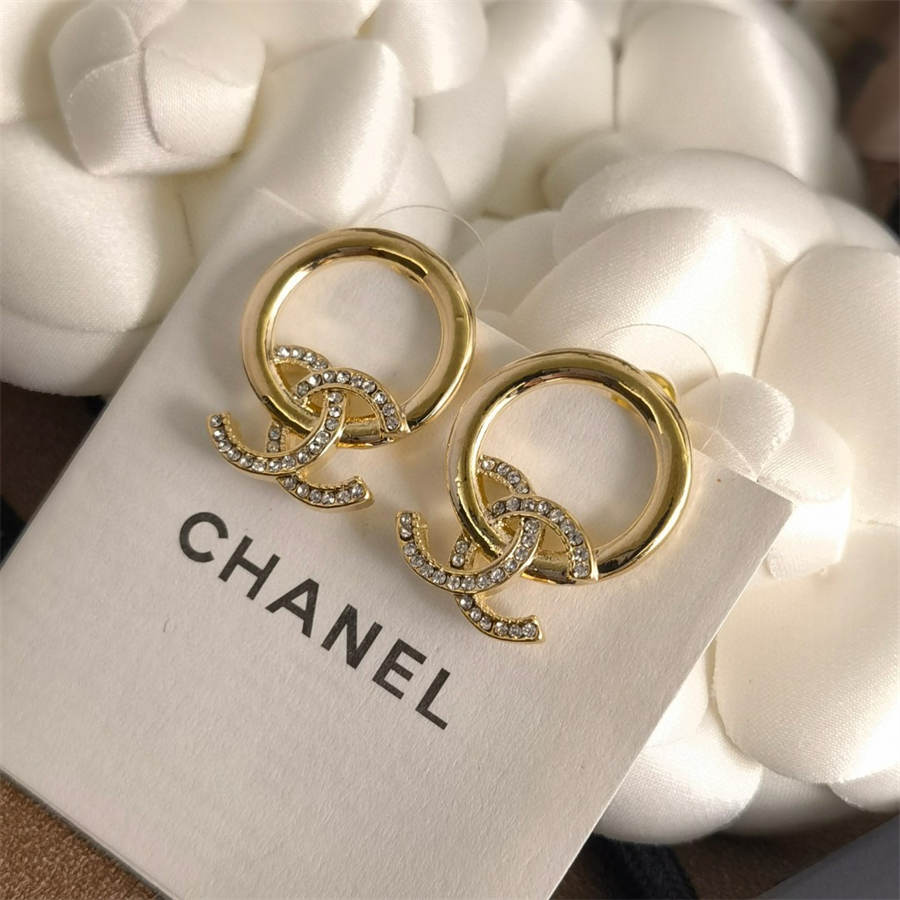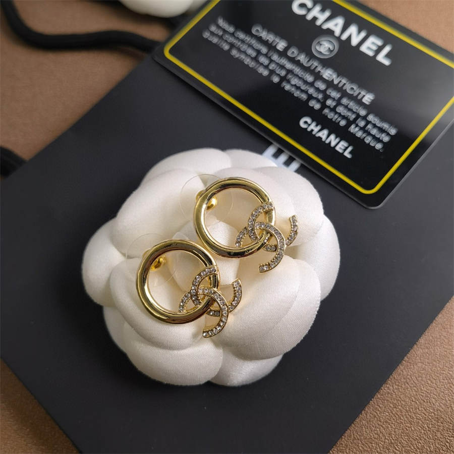 シャネル クリスタル ダイヤモンド オープンワーク サークルレター イヤリング