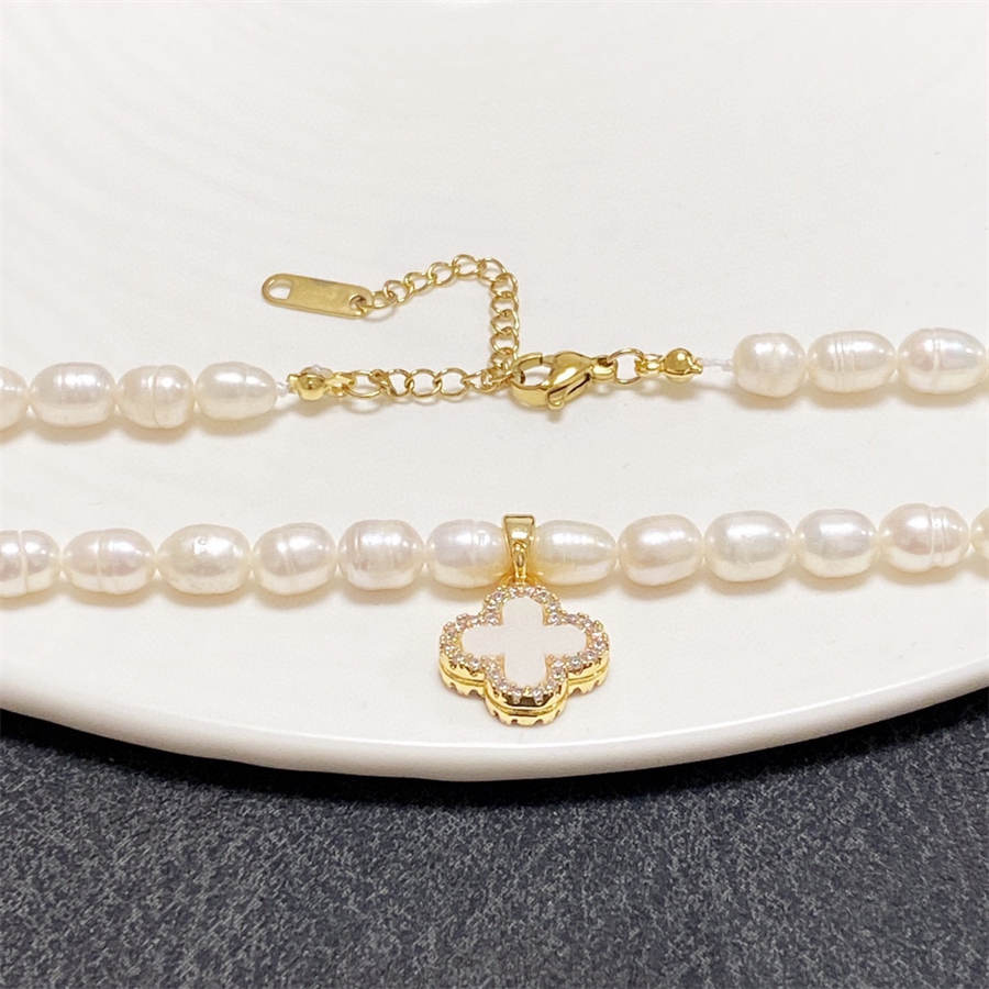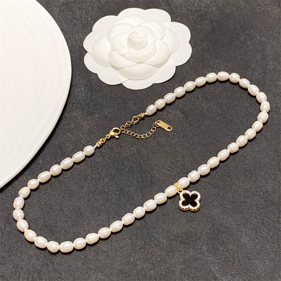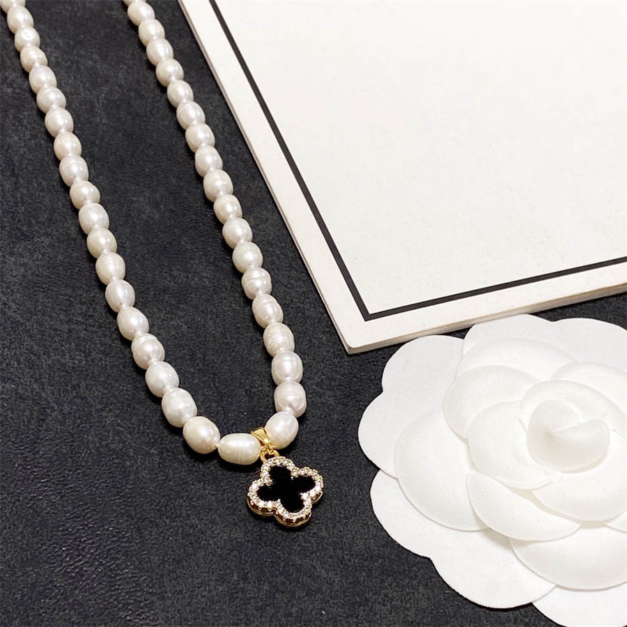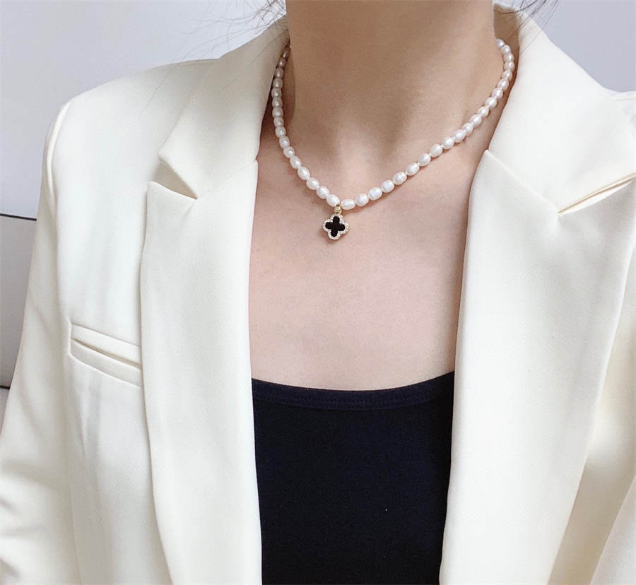 シャネル パール 四つ葉のクローバー ブラック&ホワイト ダブルウェア ネックレス