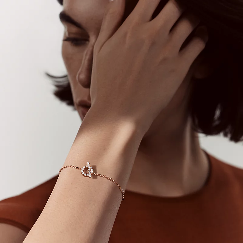 スナップ留めのローズゴールド スタッズ ダイヤモンド ブレスレット。