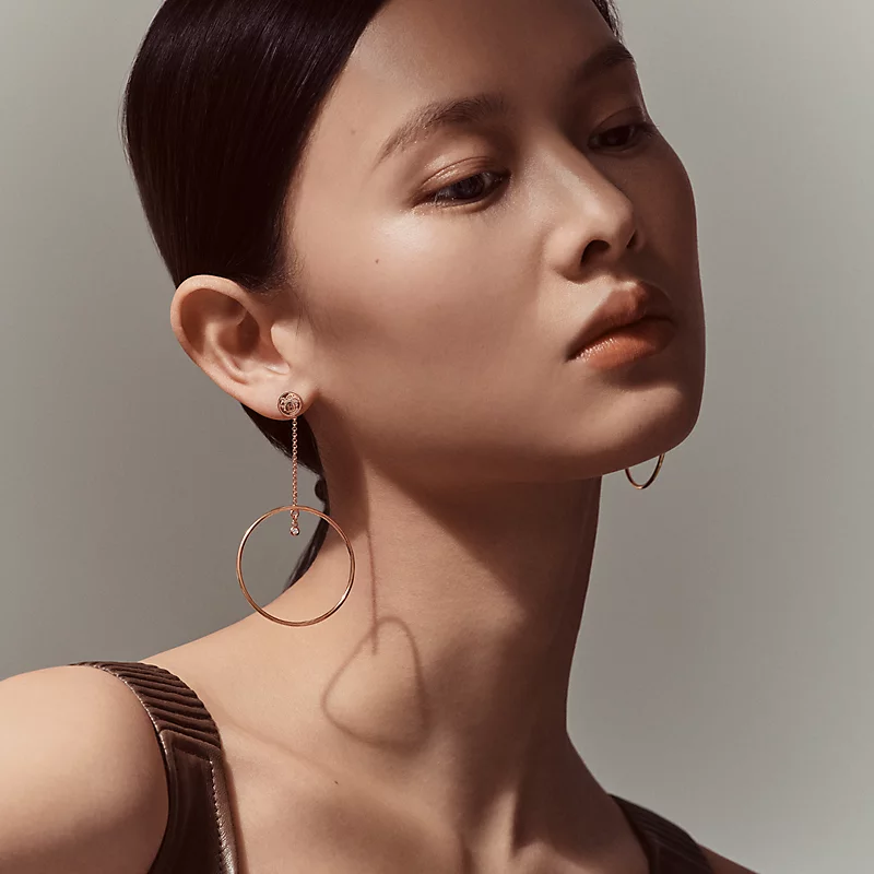 ローズゴールドにダイヤモンドをあしらったイヤリング。