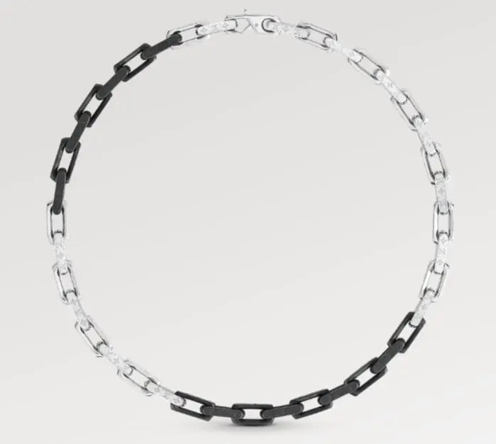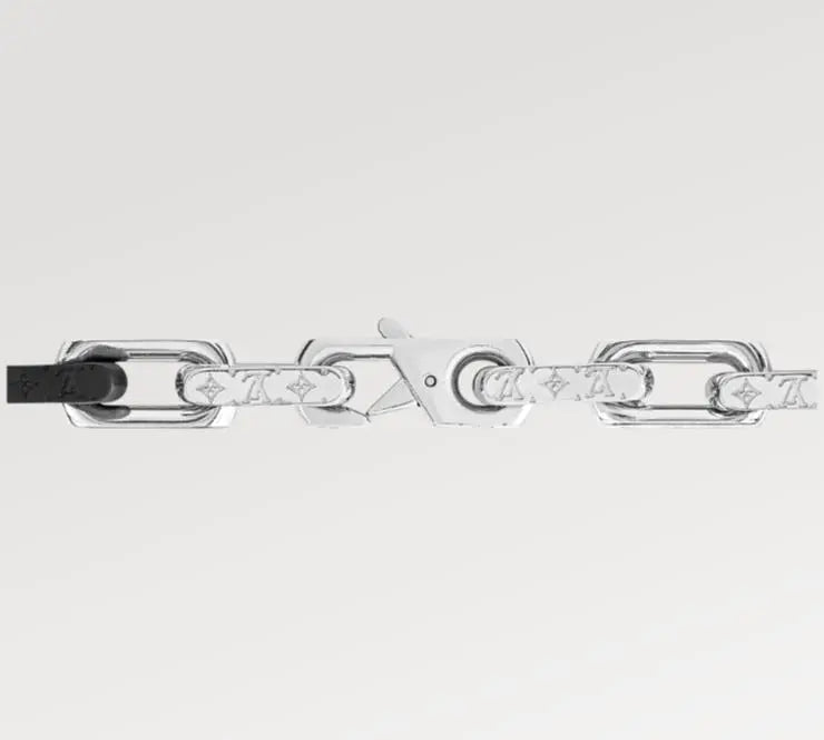 精緻なデザインと男性的な美意識が、この熟練の職人の手によって生み出されたモノグラムチェーンネックレスを特徴づけています。インダストリアルなチャンキーな金具を配し、コントラストの効いたカラーと仕上げが、目を引く魅力を放ちます。それぞれのリンクに繊細に刻まれたモノグラム模様は、柔らかな印象を与えながら、メゾンのシグネチャーを際立たせています。