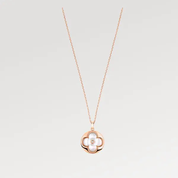 カラーブロッサムは、1896年にジョルジュ・ルイ・ヴィトンによって創作されたモノグラム・フラワーを称えるモデルです。ピンクゴールドにセットされたフラワーは、彫刻が施されたホワイトマザーオブパールの中に咲き誇ります。メダリオンは大胆で存在感のあるサイズにリニューアルされ、他のカラーブロッサムモデルと調和します。3通りの着用スタイルで、どんな装いにも新鮮さを添えます。