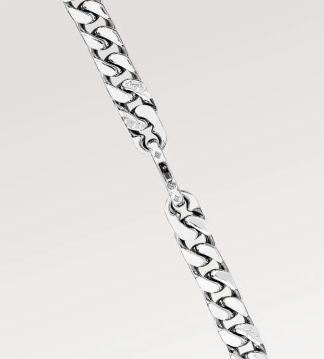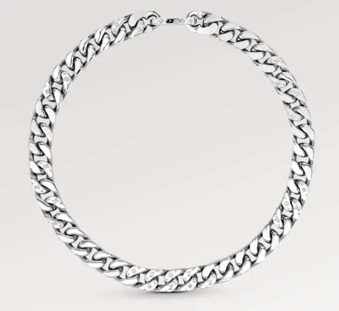 LVチェーンリンクス ネックレスは、ヴァージル・アブローによるルイ・ヴィトンの2019年春夏コレクションからインスピレーションを得た大胆なデザインです。シルバートーンのメタルリンクにモノグラムパターンをランダムに刻み込み、ダイナミックな仕上がりを実現しています。セットアイテムとして、シグネットリングと合わせてコーディネートしていただけます。